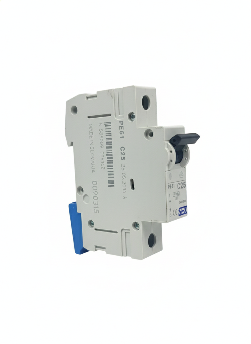 کلید مینیاتوری تک پل 25 آمپر روشنایی 6KA (تیپ B ) با کد PE61 B25 ساخت شرکت SEZ و محصول اسلواکی می باشد.
